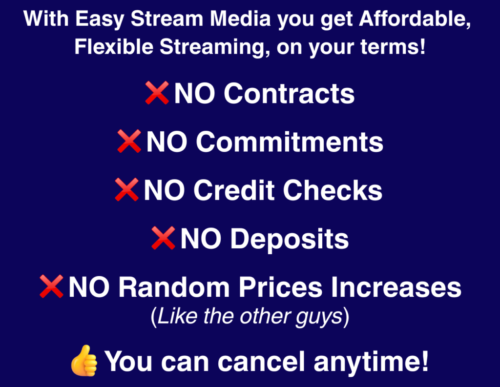 NO MORE juggling multiple subscriptions with random price increases, or paying cable bills that are constantly changing.